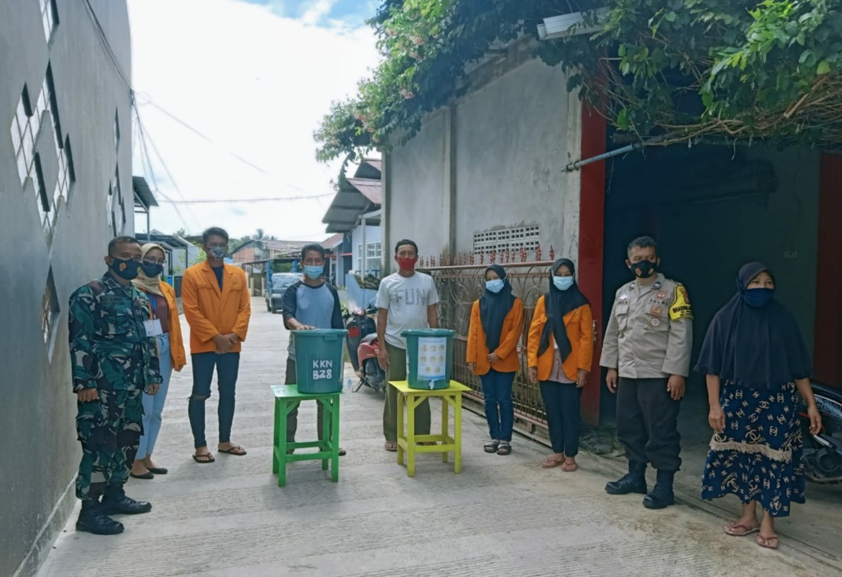 "Fokus kita sih pencegahan. Selain kami bagi-bagi masker, vitamin dan penyemprotan disinfektan. Bersama teman-teman, pakai uang iuran juga membuat tempat pencuci tangan dan kami bagikan ke beberapa RT " kata Ketua KKN B28 Uniba, Chairunisa Khusnul Khotimah.