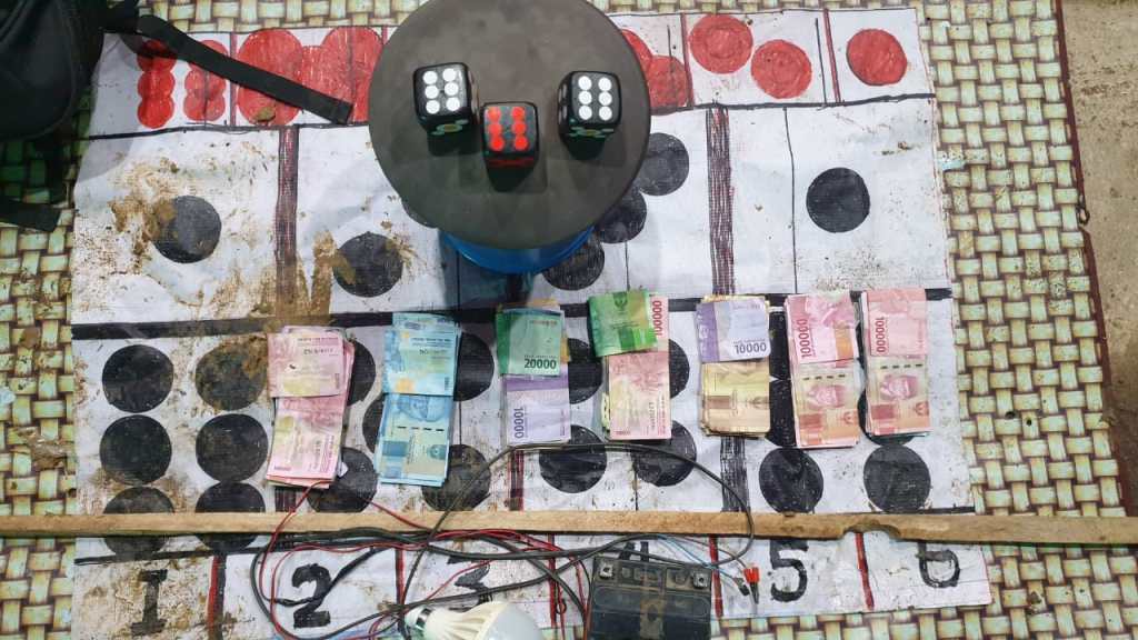 Atas informasi tersebut tim gabungan melakukan penyelidikan di daerah yang dilaporkan. Dan benar bahwa saat tiba di lokasi, tim menemukan pelaku sedang melakukan perjudian jenis dadu.