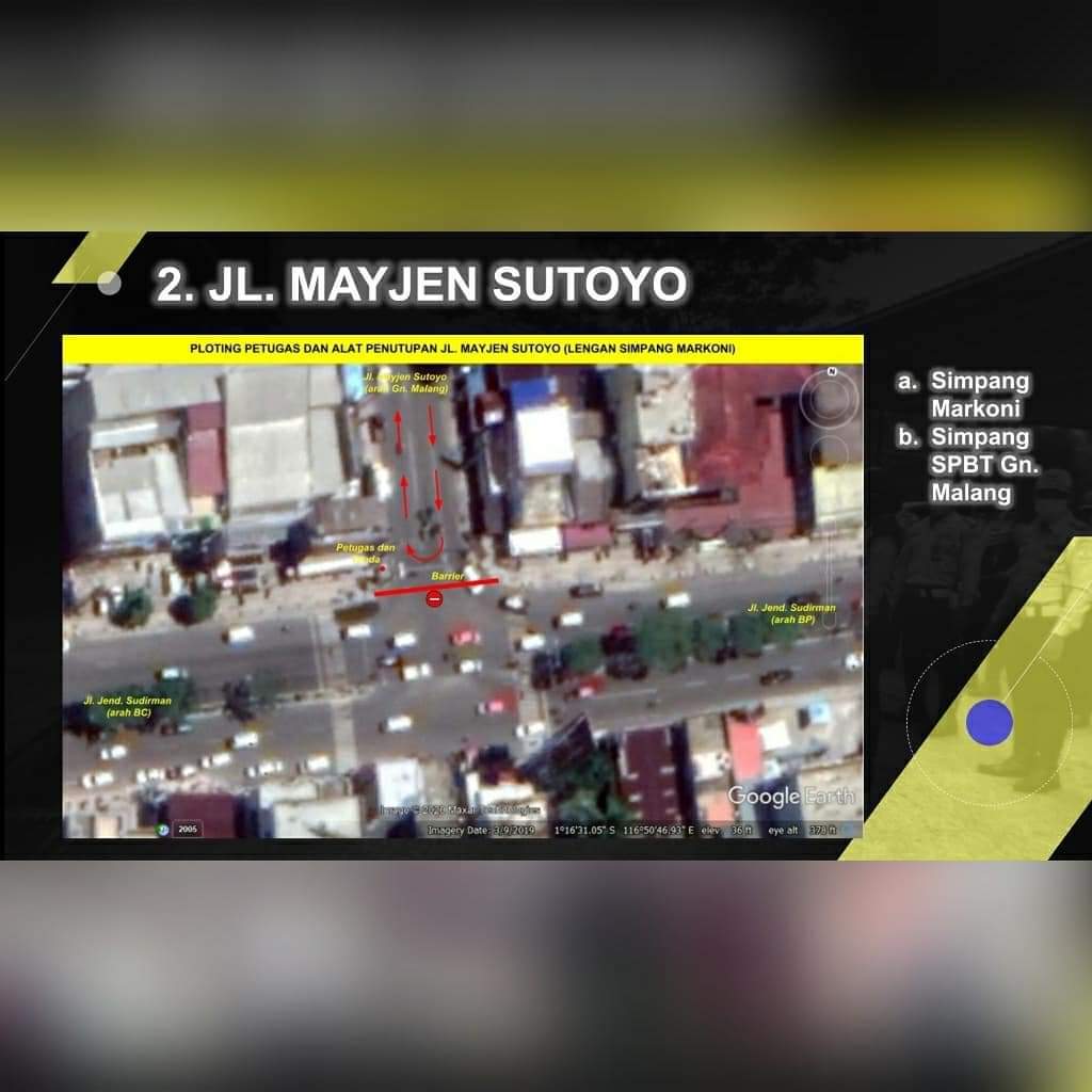 Diantaranya Jalan Jenderal Sudirman (simpang RSPB-Jalan Kutai/KPU), Jalan Asnawi Arbain atau sepanjang BJBJ, Jalan Tjutjup Suparna atau sepanjang Balikpapan Baru, Jalan Indrakila, Jalan Mayjen Sutoyo (simpang Markoni-SPBT Gunung Malang).