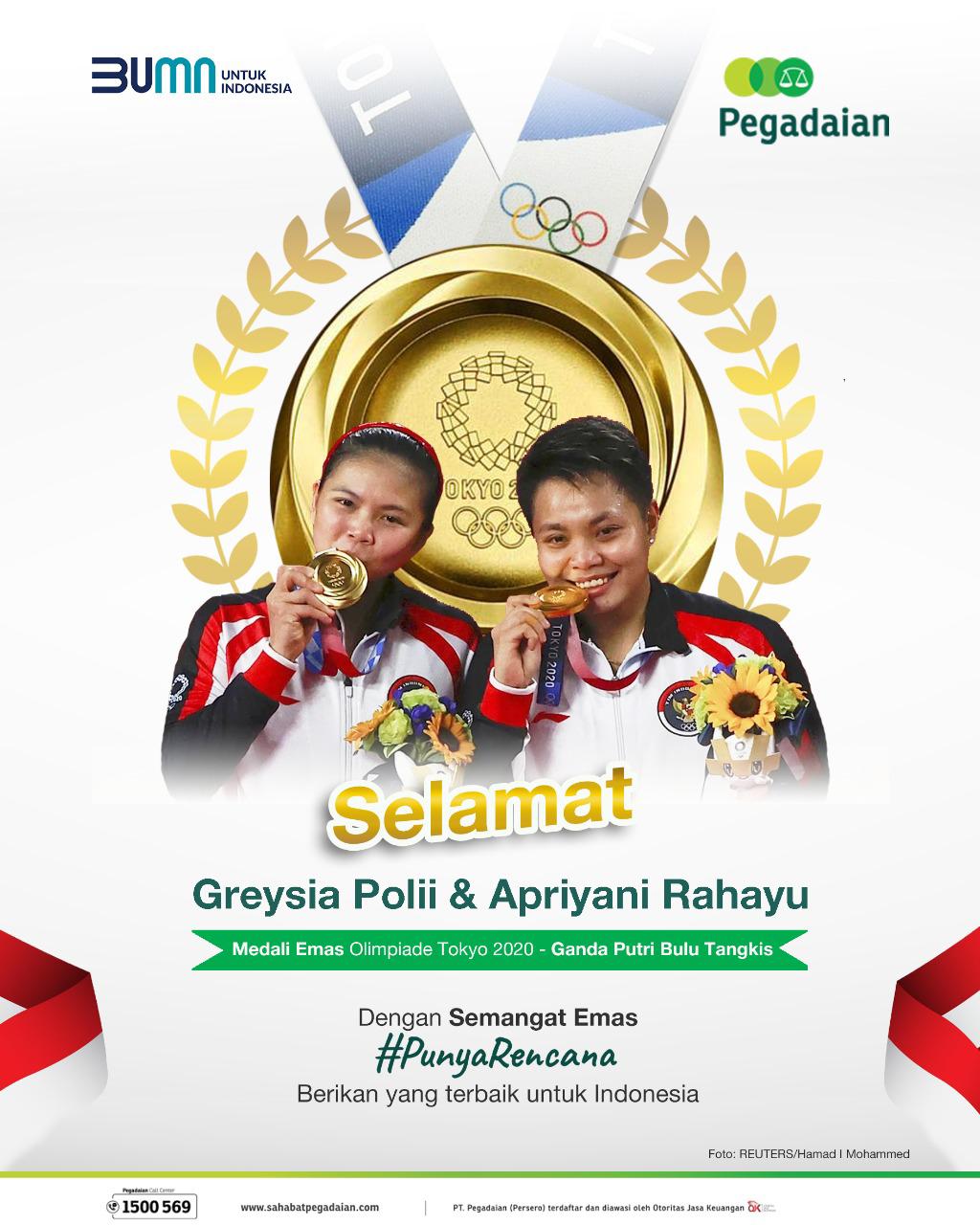 Direktur Utama PT Pegadaian (Persero) Kuswiyoto melalui siaran pers yang disampaikan, Rabu (4/8/2021), menyampaikan bahwa seluruh Insan Pegadaian ikut bersyukur dan berbangga atas prestasi para atlet yang mengharumkan nama bangsa di ajang olah raga internasional tersebut.