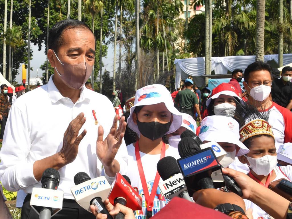Presiden mengatakan hal tersebut saat menanggapi pertanyaan awak media usai menghadiri Puncak Peringatan Hari Anak Nasional Tahun 2022 di Kebun Raya Bogor, Sabtu, 23 Juli 2022.