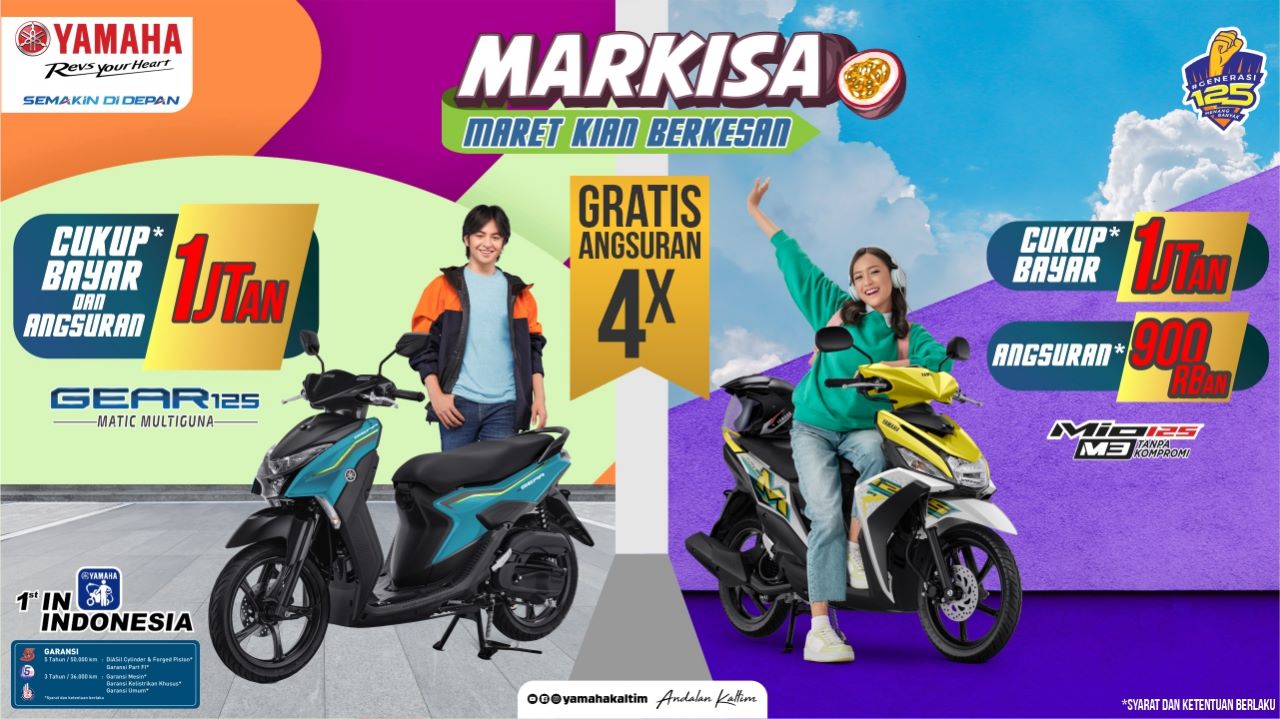 “Dengan promo Markisa ini kami memanjakan masyarakat dan pecinta Yamaha yang ingin memiliki dua motor baru, yakni Yamaha Gear 125 dan Yamaha Mio M3 125,” ungkapnya.