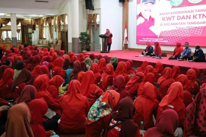 Kaltimkita.com, KUTAI KARTANEGARA - Ketua Kelompok Wanita Tani (KWT) Kutai Kartanegara (Kukar) Maslianawati Edi Damansyah membuka Rapat Koordinasi (Rakor) Tahunan KWT dan KTNA se Kecamatan Tenggarong, di Pendopo Odah Etam Tenggarong, Kamis (11/5/23).