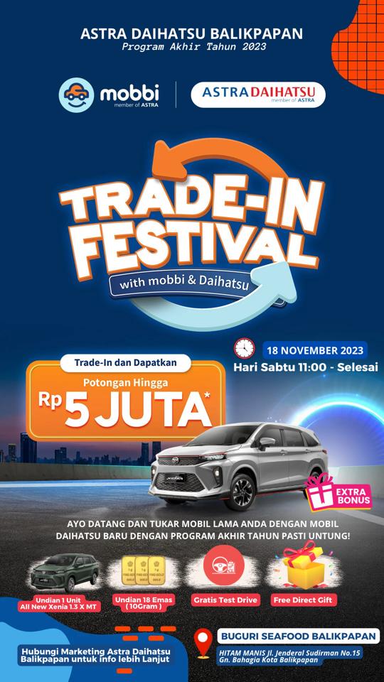 “Bursa Trade in Festival ini merupakan program Astra Daihatsu, karena itu kalian pecinta otomotif di Balikpapan, Penajam, dan Kaltim pada umumnya buruan datang pada event ini. Karena dibtrade in festival ini kalian yang ingin memiliki mobil baru dan tukar tambah mobil bisa diproses lebih baik dan menguntungkan,” ujar Kepala Cabang Astra Daihatsu Balikpapan, Nidzo Muddin, Kamis (16/11/2023).