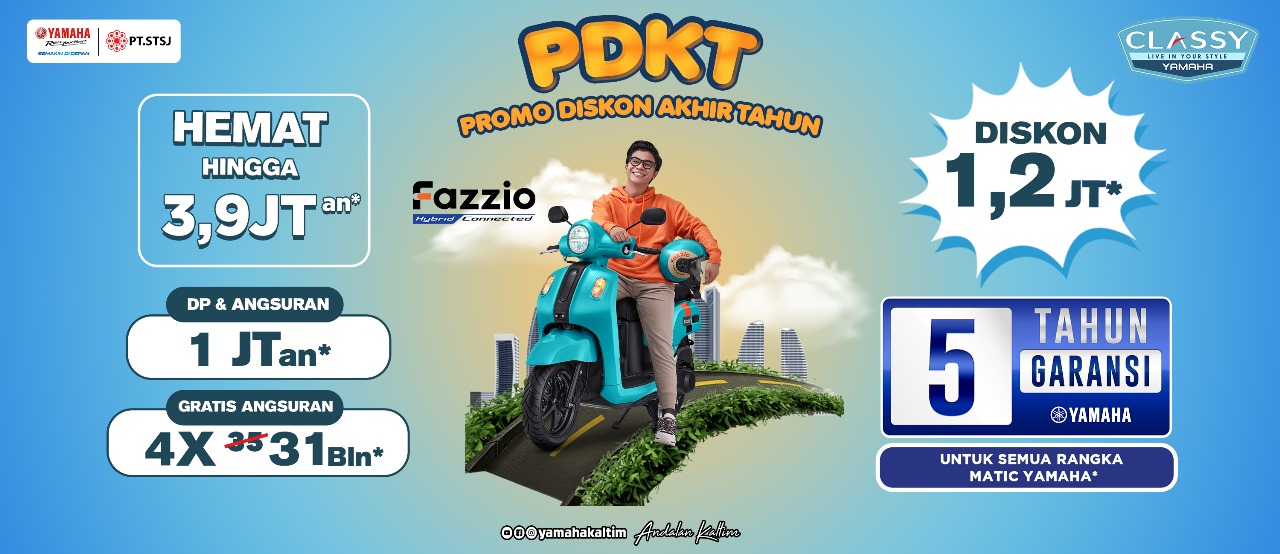 “Cukup dengan promo PDKT alias Promo Diskon Akhir Tahun pada bulan Desember ini tentunya kalian dijamin bisa bawa pulang motor Yamaha Fazzio,” ujar Asisten Manajer PT STSJ Main Dealer Yamaha Kaltimtara, Efendy Ariadi.