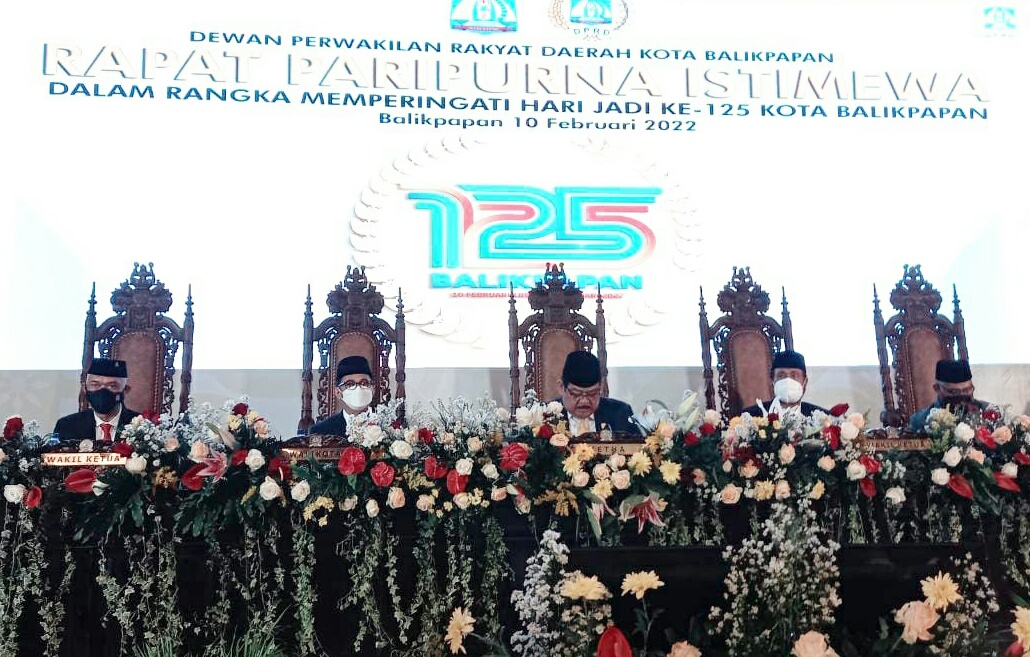 Kaltimkita.com, BALIKPAPAN - Dalam rangka memperingati HUT Ke-125 Kota Balikpapan, pagi ini, Rabu (9/2/2022), DPRD Kota Balikpapan menggelar Rapat Paripurna Istimewa Masa SIdang I Tahun 2022, bersama Pemerintah Kota dan Forkopimda Balikpapan di Ballroom Hotel Novotel.