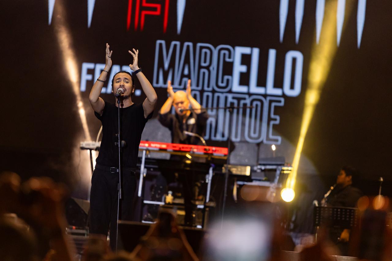KaltimKita.com, BALIKPAPAN – Lagu berjudul angin membuka penampilan Dewa 19 Feat Marcello Tahitoe di Balikpapan. Ribuan pasang mata baladewa sebutan fans Dewa pun langsung terkesima oleh grup band legenda Tanah Air ini.