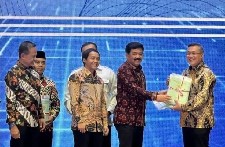 Selain itu, Menteri Hadi Tjahjanto juga menyerahkan 6 dokumen hasil pengadaan tanah dari 12 paket pengadaan tanah untuk Otorita IKN.