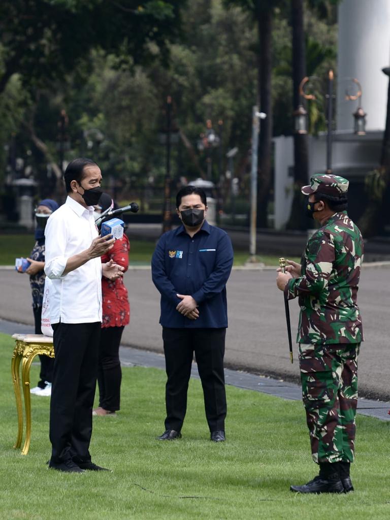 Terakhir, Erick meminta masyarakat yang menjalani isolasi mandiri untuk bersabar menerima paket obat isoman yang akan didistribusikan oleh jajaran TNI. “Karena itu kami berharap semua, apalagi sekarang TNI sudah turun, kita mengharapkan rakyat sabar. Kita hadir di rumah masing-masing dengan tadi cara-cara yang tepat dan sesuai dengan standar yang sudah ada di Kemenkes dan BPOM,” ujar Menteri BUMN. (*/bie)