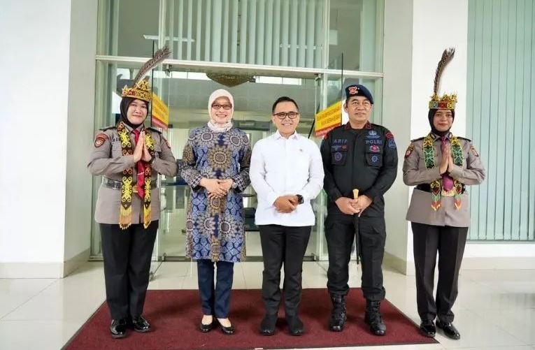 Kalimantan Timur Sri Wahyuni menyambut kedatangan Menteri Pendayagunaan Aparatur Negara dan Reformasi Birokrasi (PANRB) Abdullah Azwar Anas di VIP Room Bandara Internasional Sultan Aji Muhammad Sulaiman Sepinggan Balikpapan, Sabtu (10/6/2023).