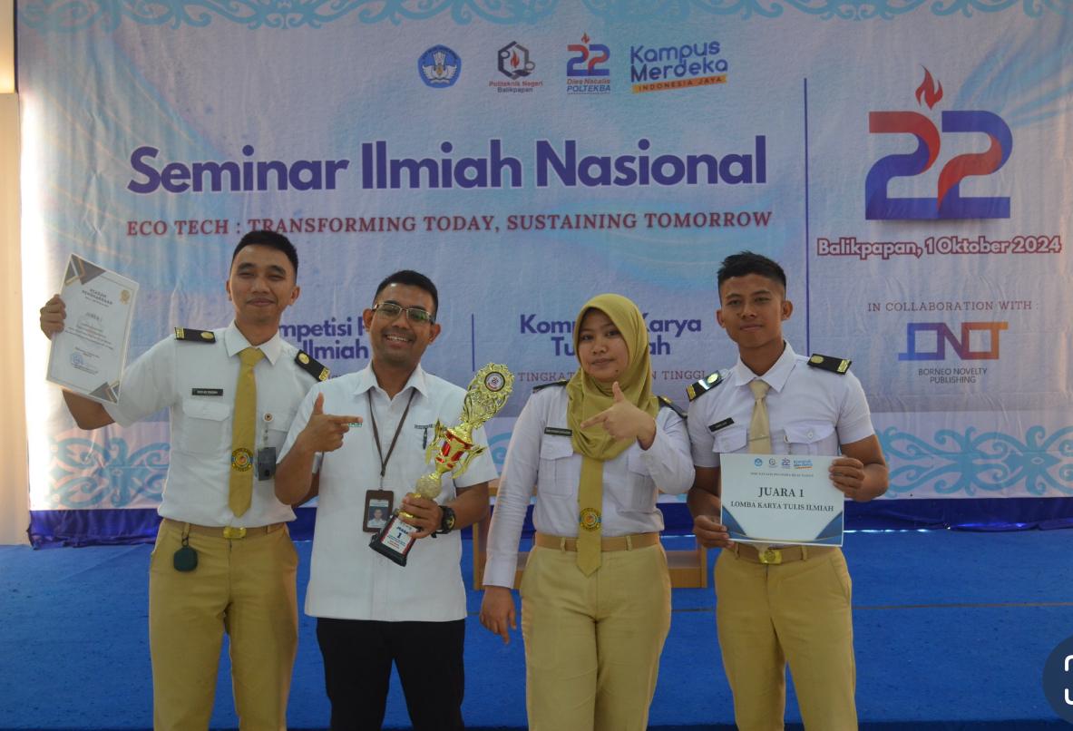 KaltimKita.com, BALIKPAPAN – Tuntas sudah kompetisi lomba poster tingkat SMA se-Kaltim dan karya tulis ilmiah tingkat perguruan tinggi se-Indonesia yang berlangsung di Gedung Terpadu Lantai 4, Selasa (1/10/2024) kemarin. Memeriahkan Dies Natalis ke-22 dengan berkolaborasi bersama Borneo Novelty Publishing, dirangkai dengan Seminar Ilmiah Nasional. Mengundang Kepala Badan Riset Inovasi Daerah Brida Kaltim Dr. M. Ir. H. Fitriansyah, ST, MM dengan moderator Ezra Hartarto P, ST, M.Eng selaku dosen Teknik Sipil Poltekba.