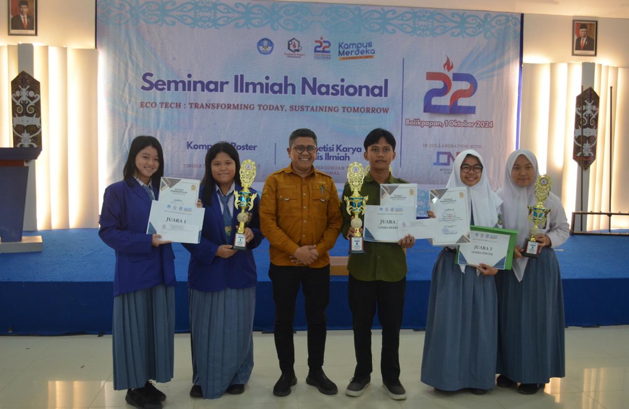 Pada kategori lomba poster tingkat SMA, perwakilan SMA Negeri 1 Balikpapan atas nama Casey Amelie Wibowo berhasil meraih juara dengan tema Plas to Tower : Solusi Hemat Bahan Bakar Sekali Klik. Sementara peringkat dua diraih oleh wakil SMAS ITCI PPU atas nama Trio Fitrada dengan tema Energi Hijau Berkelanjutan.