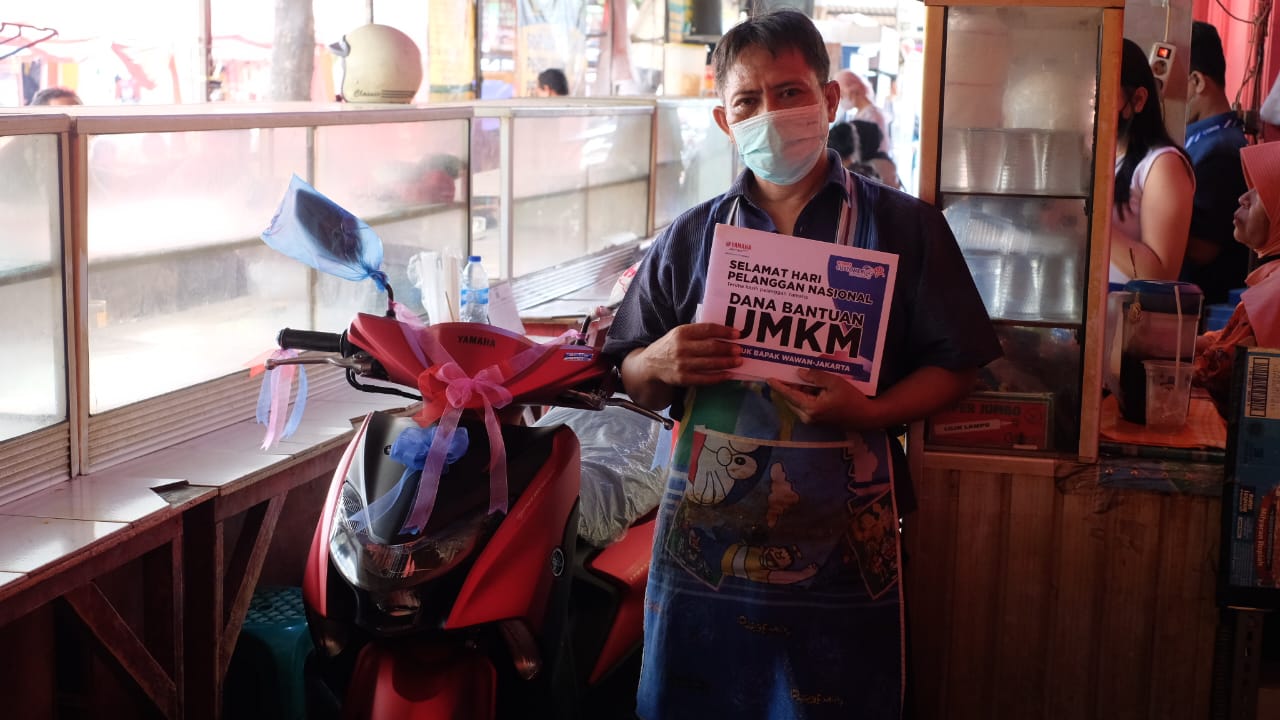 Sementara itu, salah seorang konsumen yang merasakan pengalaman berbeda di Hari Pelanggan Nasional ini mengungkapkan kebahagiaan mendapatkan layanan dari management PT. YIMM dan memperoleh dana bantuan khusus. ”Selama saya memiliki produk Yamaha dari tahun 2007, Alhamdulillah saya merasa puas dengan kualitas motor-motor yang saya beli mulai dari Jupiter MX, Mio M3, dan sekarang saya beli Gear 125 yang ditambah dapat bonus lagi. Terimakasih Yamaha atas perhatiannya, saya sangat berterimakasih dengan hadiah kejutan ini yang membuat saya kaget banget tidak menyangka memperoleh rejeki ini,” ungkap Wawan Gefira, pedagang gado-gado yang juga merupakan konsumen loyal Yamaha. (*/bie)