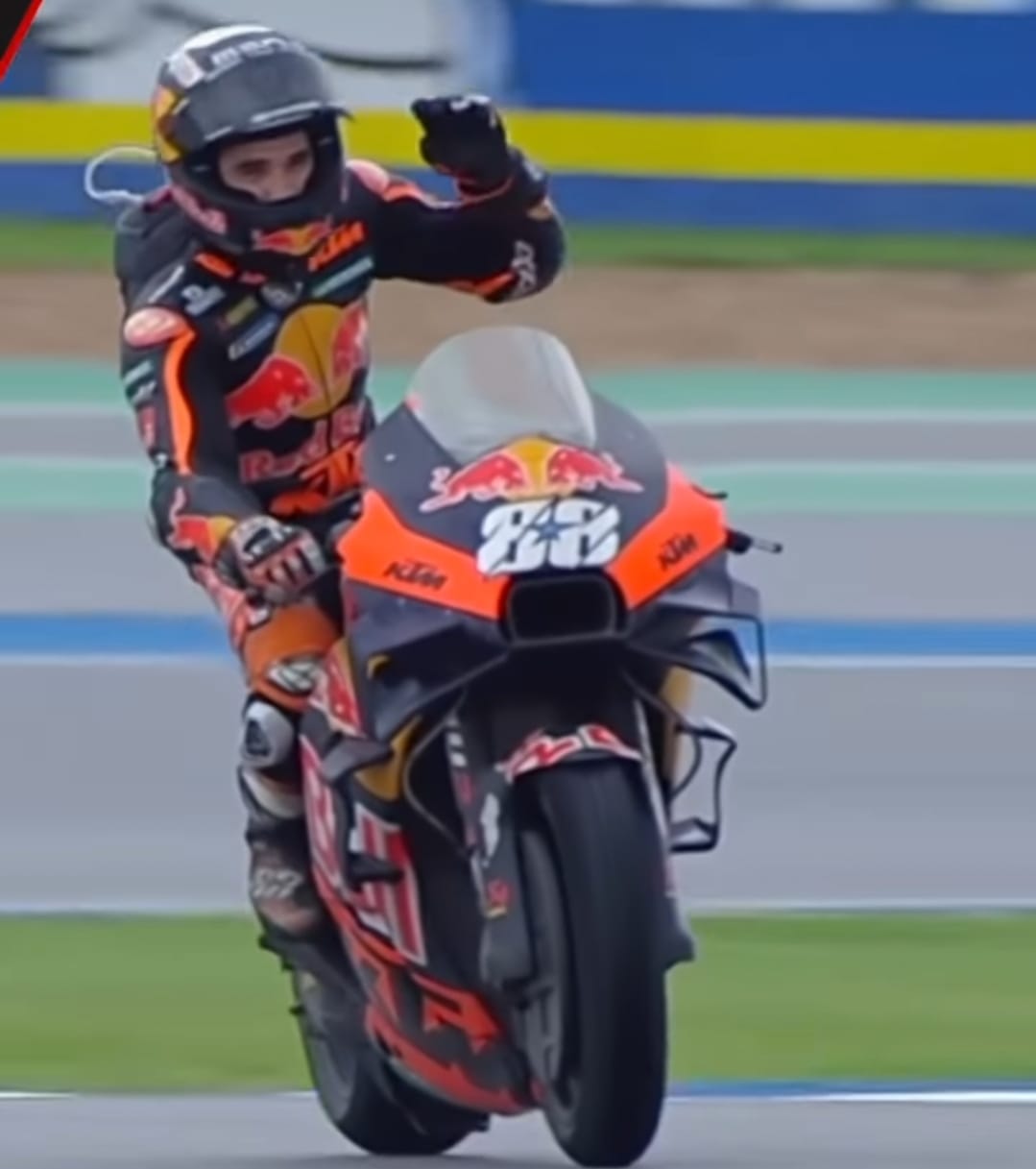 Kaltimkita.com, BURIRAM - Hasil MotoGP Thailand 2022 sudah bisa dilihat. Rider Red Bull KTM, Miguel Oliveira, menjadi juaranya. Balapan di Sirkuit Buriram, Thailand, Minggu (2/10/2022), harus ditunda karena cuaca buruk. Selama 45 menit mundur, race juga masih belum dimulai. Race ke-17 di MotoGP 2022 itu akhirnya start setelah mundur 50 menit.
