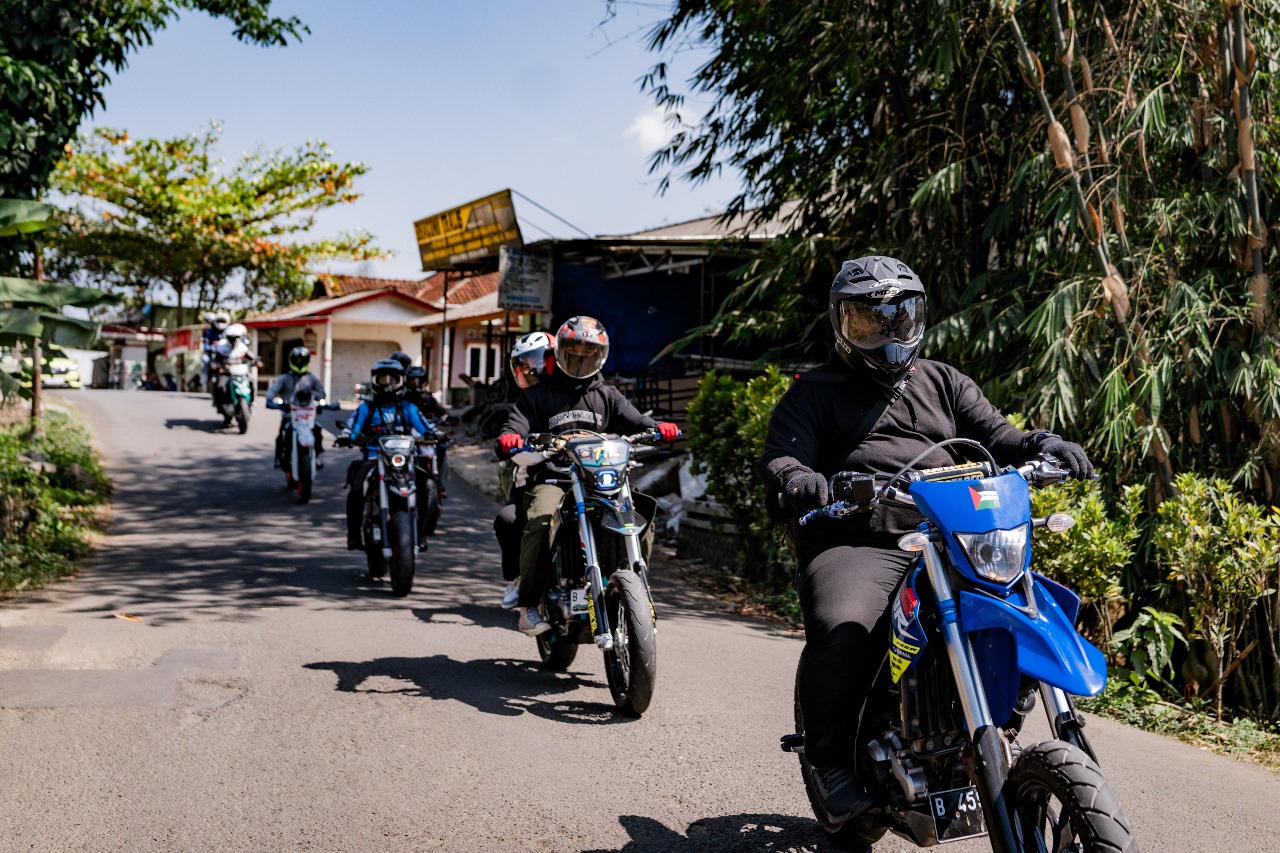 Setelah kurang lebih 1 jam mendengarkan pemaparan materi, para peserta kemudian langsung bergegas menuju motor mereka masing-masing untuk adakan sesi foto bersama terlebih dahulu lengkap dengan riding gear mereka sebelum full gaspol menuju Jonggol. Rute cross country yang melewati daerah perkampungan penduduk dengan kombinasi jalan berbatu dan berlubang serta tikungan tajam, tanjakan, dan turunan curam khas daerah perbukitan Bogor, menjadi suguhan utama Morning Ride kali ini.