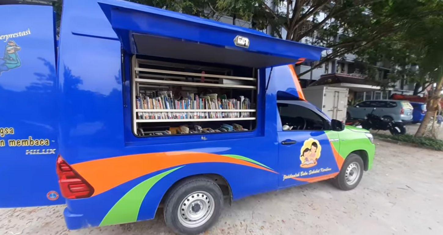 Mobil ini, beroperasi di daerah yang jauh dari kota, yang menyasar sekolah dasar yang tidak memiliki perpustakaan.