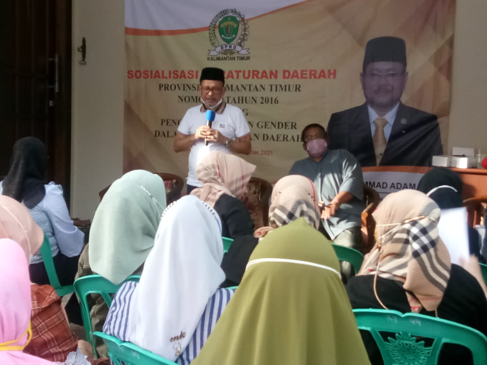 Kaltimkita.com, BALIKPAPAN - Anggota Komisi III DPRD Provinsi Kalimantan Timur Daerah Pemilihan (Dapil) Balikpapan Ir. H. Muhammad Adam, M.T. menggelar Sosialisasi Peraturan Daerah (Sosper) Provinsi Kalimantan Timur Nomor 02 Tahun 2016 tentang Pengarusutamaan Gender dalam Pembangunan Daerah dikediamanannya di Kelurahan Kelandasan Ulu, Balikpapan Kota, pada Rabu (17/11/2021) siang.