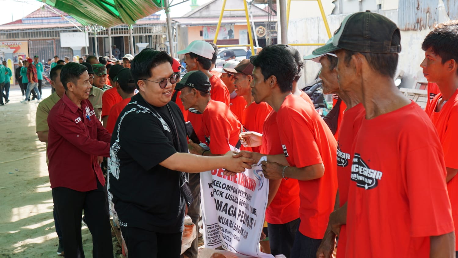 Penyerahan bantuan dilakukan di Dermaga Toko Lima, Kecamatan Muara Badak, disambut suka cita oleh para nelayan, Jumat (9/8/2024).