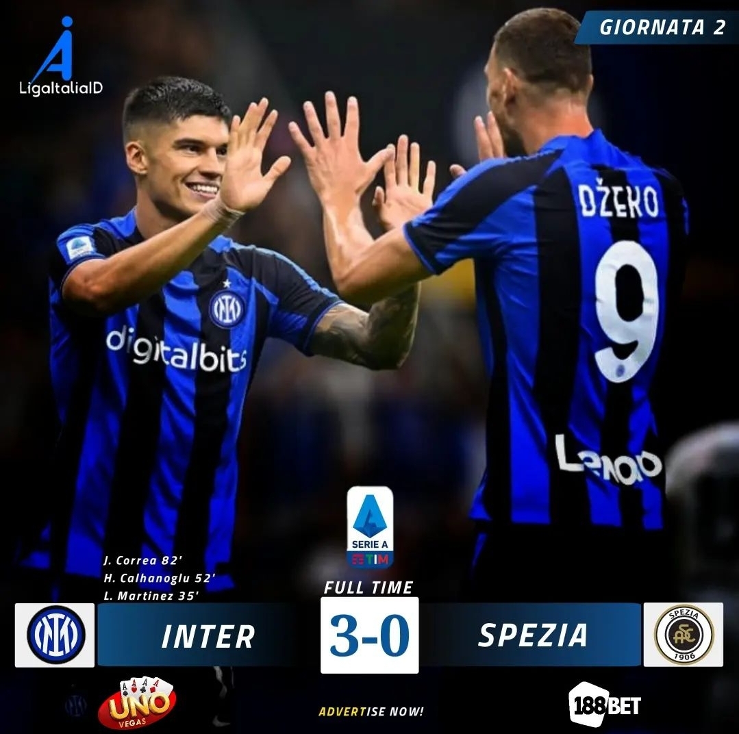 Kaltimkita.com, MILAN - Inter Milan menang meyakinkan saat menjamu Spezia di pekan kedua Serie A. Nerazzurri menang 3-0 berkat Lautaro Martinez, Hakan Calhanoglu, dan Joaquin Correa.