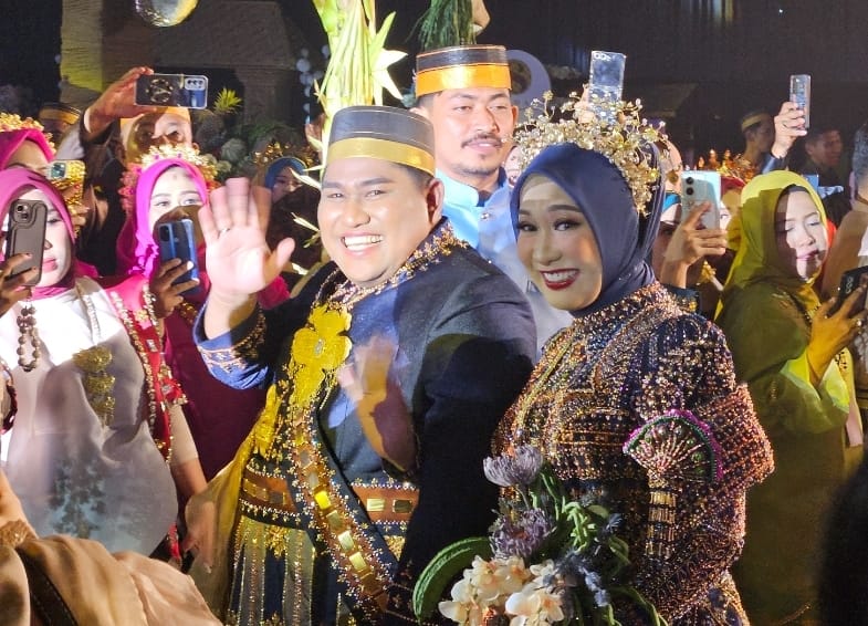 Ketika memasuki gedung, kedua mempelai disambut tarian paduppa. Ini memang tarian tradisional dari masyarakat Bugis-Makassar yang dipersembahkan sebagai tarian selamat datang untuk menyambut tamu kehormatan. Sang mempelai yang mengenakan baju khas Bugis itu tampak serasi melangkah perlahan sampai melambaikan tangan kepada undangan yang berdiri di sisi kiri dan kanan.