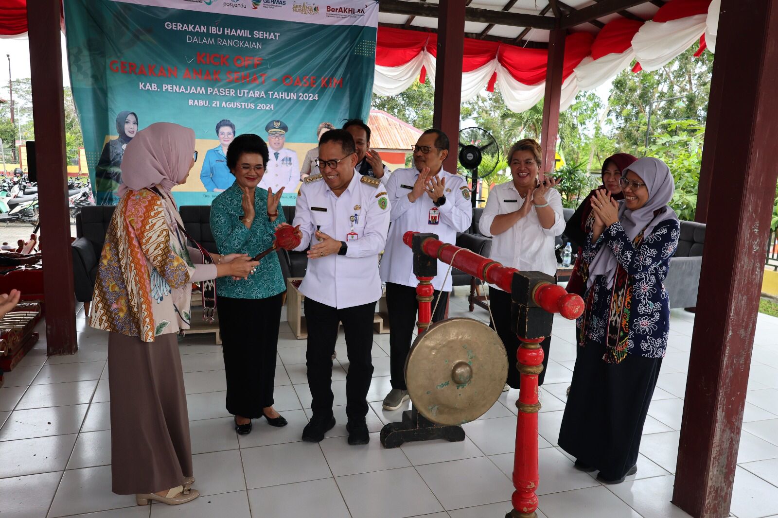 Tampak hadir Direktur Gizi dan Kesehatan Ibu dan Anak, Kementerian Kesehatan, RI. Dharma Wanita Persatuan Kementerian Kesehatan RI, Kepala Dinas Kesehatan Propinsi Kalimantan Timur, Ketua Tim Penggerak PKK Kab.PPU Ketua Dharmawanita Persatuan Kab. PPU, unsur pimpinan perangkat daerah di lingkungan pemerintah Kab. PPU, Camat Penajam, Kepala UPT. Puskesmas Petung, Kepala Desa Giripurwa beserta jajarannya, dan tamu undangan yang hadir.(adv)
