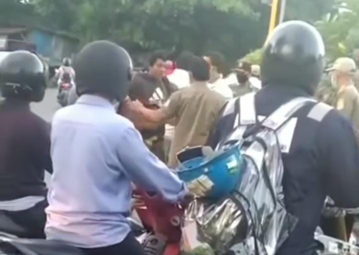 Saat berhasil diamankan oleh petugas, pengamen tersebut berontak, hingga siku tangannya mengenai mulut salah satu anggota Satpol PP. Yang kemudian dibalas dengan pukulan oleh oknum anggota Satpol PP.