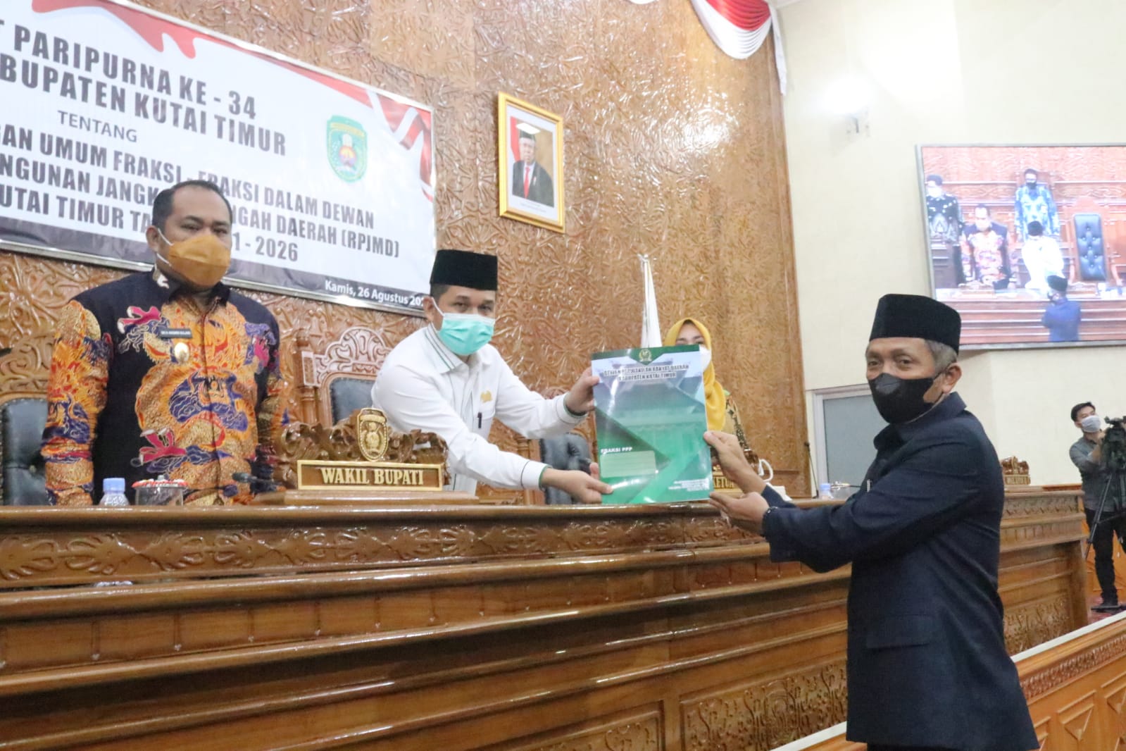 “Tentu untuk Raperda RPJMD 2021-2026 fraksi kami juga memberikan saran serta catatan penting sebagai indikator terlaksananya tata pembangunan yang baik dan berkeadilan ekonomi yaitu menitikberatkan pada tiga hal yakni pertama pengelolaan dan pendataan aset-aset milik Pemkab Kutim, kedua realisasi peraturan – peraturan daerah Kabupaten yang sudah di sahkan secara optimal dan maksimal, ketiga transparansi informasi publik terkait kebijakan keuangan daerah,” tegas pandangan Son Hatta mewakili fraksi PPP.