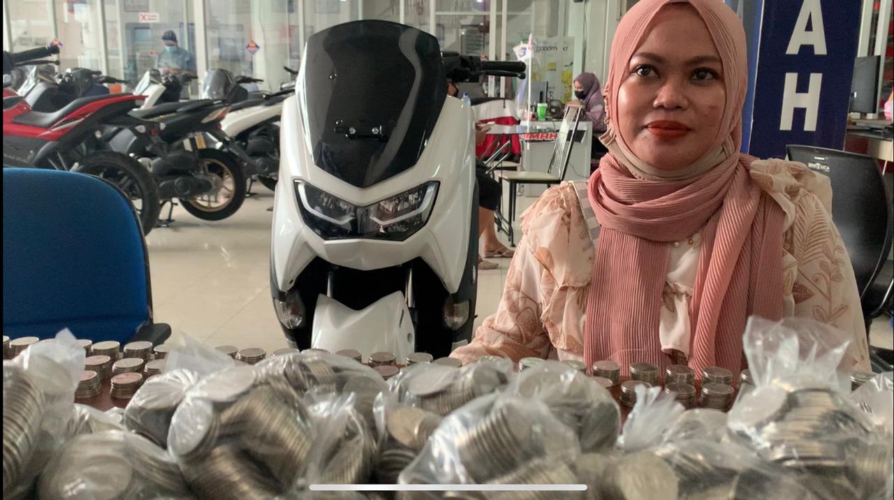 Dikatakan Hasnaini, uang koin tersebut merupakan tabungannya bersama sang suami yang telah dikumpulkan selama ini. Usai dirasa cukup, mereka pun membawa uanh koin tersebut ditambah beberapa uang kertas untuk membeli sebuah All New NMax. "Uang koin itu uang tabungan saya dan suami yang memang kami kumpulkan. Memang sengaja untuk membeli sesuatu. Dan sudah terkumpul banyak, jadi kita beli kendaraan, atas nama saya," ungkapnya.