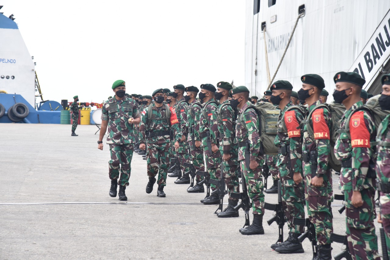 Kaltimkita.com, Balikpapan - Pangdam VI/Mlw Mayjen TNI Teguh Pujo Rumekso memimpimpin upacara penyambutan purna tugas satgas Yonif Raider 613/Raja Alam sebagai Satgas Satuan Organik Papua, di Pelabuhan Semayang Balikpapan, Jum’at (8/4/2022).