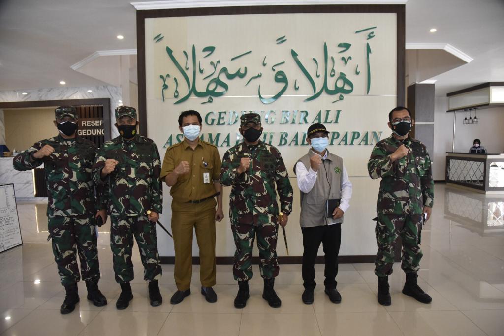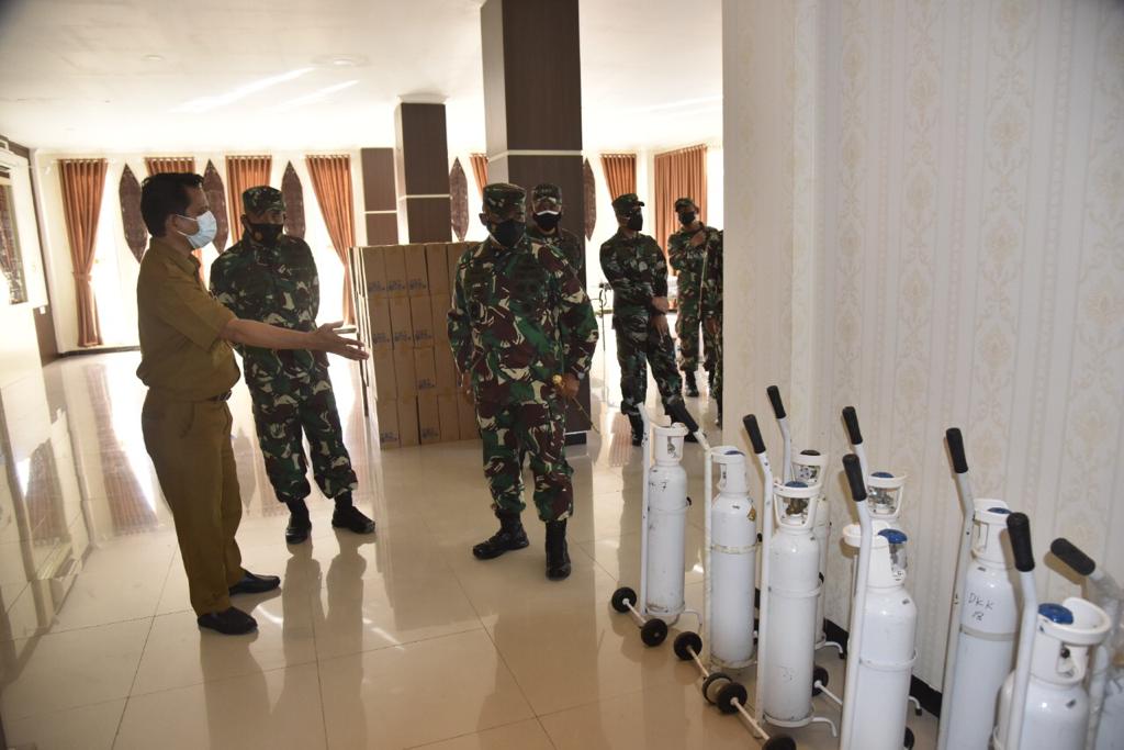 Kaltimkita.com, BALIKPAPAN-Pangdam VI/Mulawarman Mayjen TNI Heri Wiranto, S.E., M.M., M.Tr. (Han) didampingi beberapa pejabat di lingkungan Kodam VI/Mlw melaksanakan peninjauan langsung tempat isolasi Covid-19 yang berada di Asrama Haji Balikpapan, Selasa (27/7/2021).