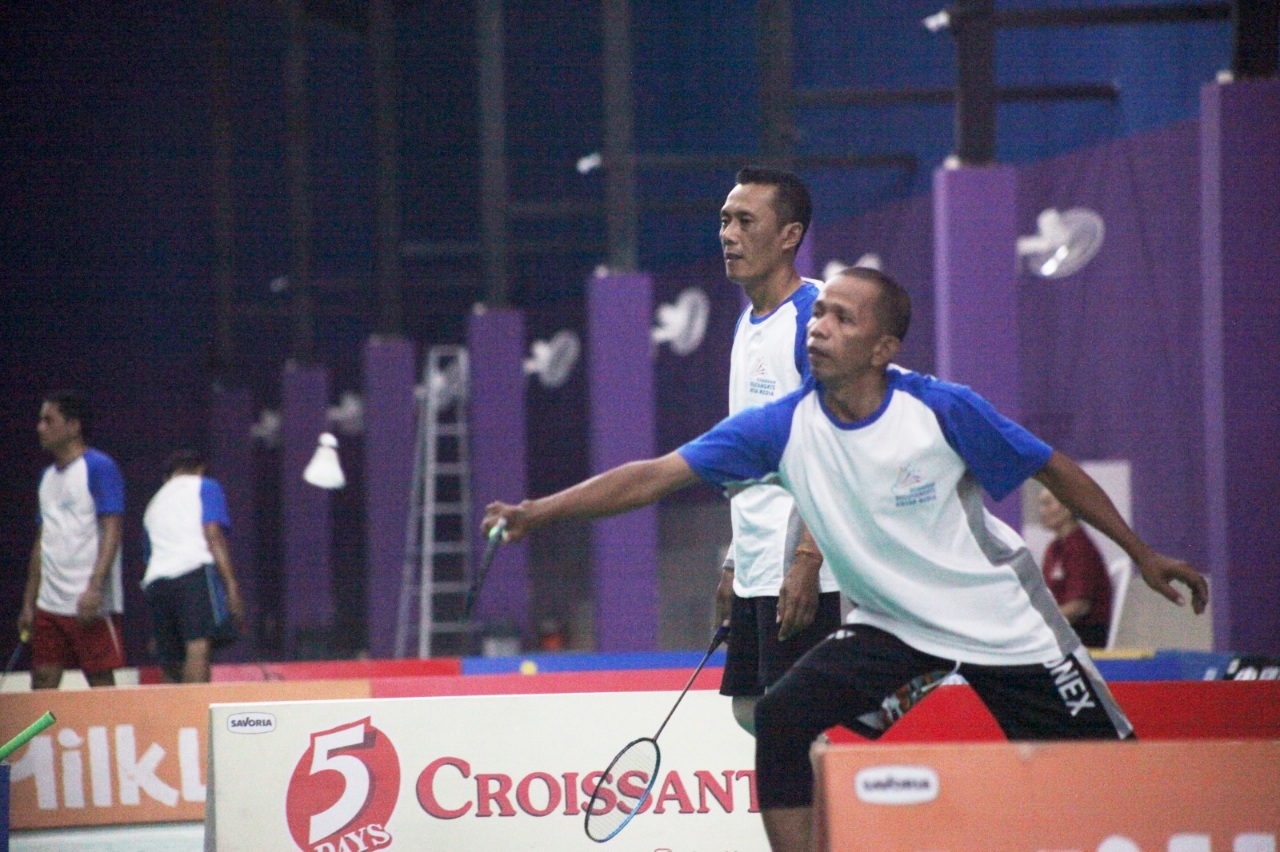 Kaltimkita.com, SURABAYA – Kejutan pasangan Radar Madura Gatot S.Tomo/Muzzamil di Kejuaraan Bulutangkis Antar Media (KBAM) Zona Timur 2024 terus berlanjut. Terbukti, keduanya akhirnya keluar sebagai juara di kelompok umur 46 tahun ke atas.