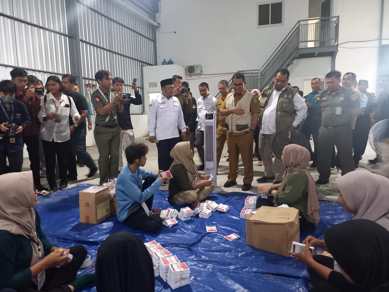 Kaltimkita.com, BALIKPAPAN- Pj Gubernur Kaltim Akmal Malik bersama Forkopimda Kaltim dan Balikpapan mengunjungi gudang logistik KPU Kota Balikpapan yang berada di kawasan Jalan Somber, Balikpapan, Senin (11/11/2024).