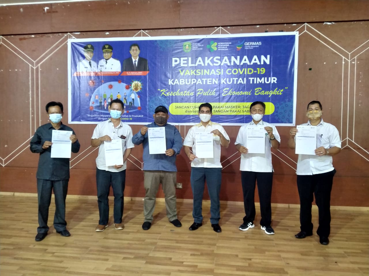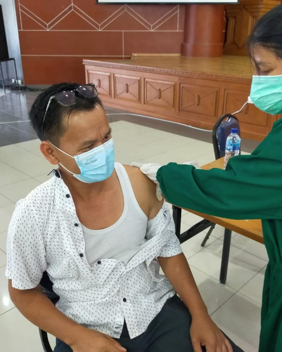 Penyuntikan vaksin covid – 19 berlangsung di gedung Serba Guna kawasan Bukit Pelangi (areal perkantoran sentra pemerintahan dan sekretariat DPRD Kutim). Penyuntikan vaksin covid diawali oleh Bupati Kutai Timur Drs H Ardiansyah, Sulaiman, M.Si secara bergiliran baik oleh Wabup Kutim Dr H Kasmidi Bulang, ST.,MM, Dandim 0909-Sangatta Letkol Czi Pabate bersama jajaran, unsur perwakilan pimpinan dewan seperti wakil Ketua II DPRD Kutim Arfan, SE.,M.Si (NasDem), Kajan Lahang (NasDem), Piter Palingi, A.Md, (NasDem), H. Mochammad Son Hatta, S.Sos (PPP), Sayid Anjas, SE.,MM (Golkar), Arang Jau (Golkar) perwakilan kepala OPD, PNS, ASN, TK2D.