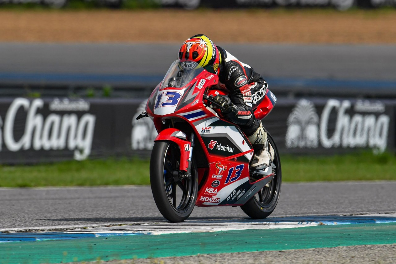 BURIRAM– Pebalap binaan Astra Honda Racing Team (AHRT), Decksa Almer Alfarezel, berhasil mempersembahkan podium tertinggi untuk Indonesia di ajang balapan Honda Thailand Talent Cup 2022 (TTC) seri ke-4. Pada balapan yang berlangsung akhir pekan ini (4/9/2022), pebalap berusia 14 tahun tersebut berhasil menunjukkan performa balap tangguhnya dan mengalahkan pebalap tuan rumah dari Thailand di Chang International Ciruit.