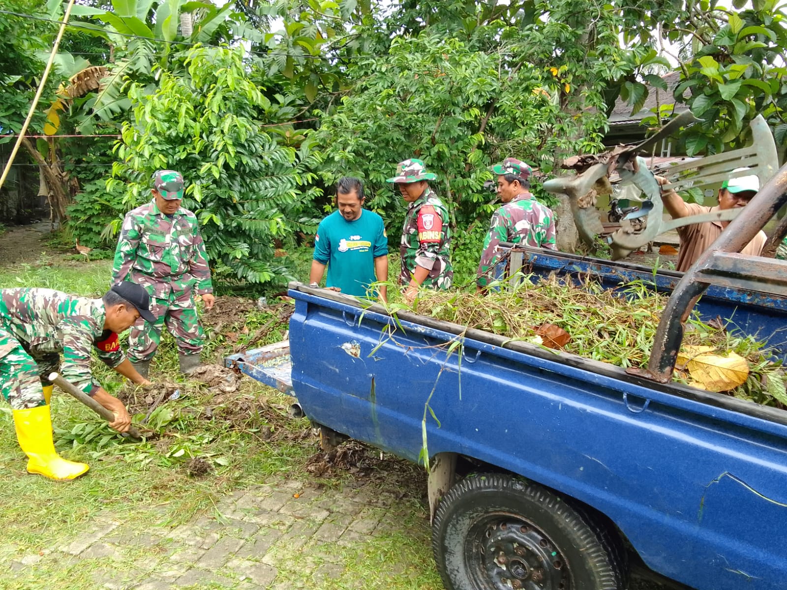 Kegiatan karya bakti TNI ini menitikberatkan pembersihan parit dan selokan serta sampah yang berada di desa tersebut.
