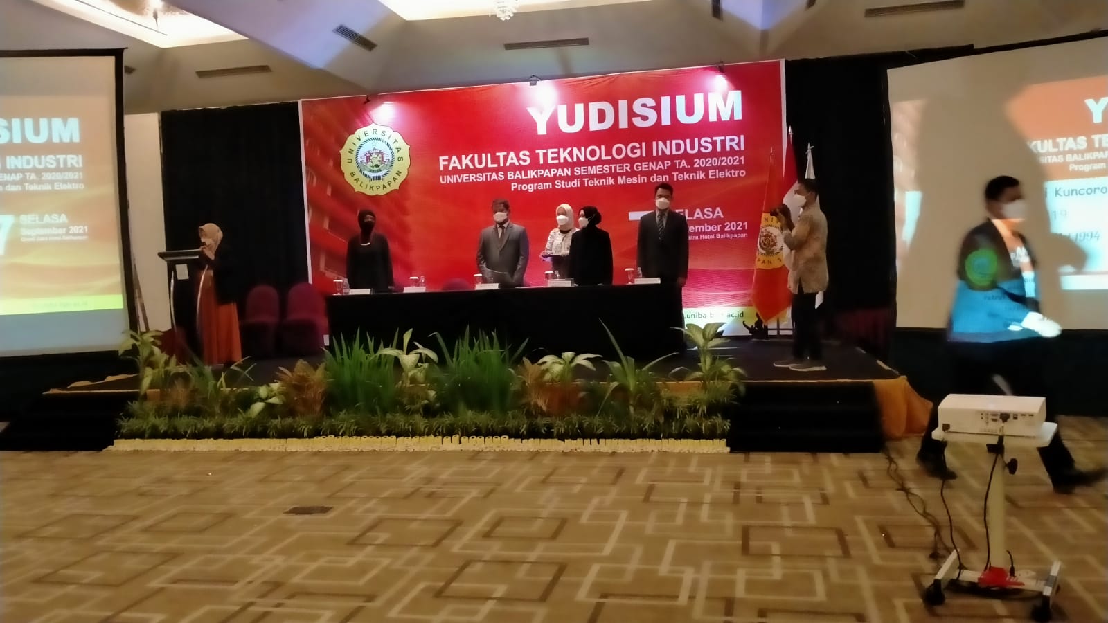 Yudisium yang dipimpin oleh Dekan FTI Gunawan ST, M. Eng, wakil Dekan Mayda, ST, MT, Kaprodi Teknik Mesin Sisca, ST, MT, IPM, Kaprodi Teknik Elektro Andi Asni, ST, M., Eng, Kaprodi Teknik Industri KuswandinArifin, ST, MT dan dilaksanakan dengan menggunakan dua bahasa Inggris dan Indonesia.