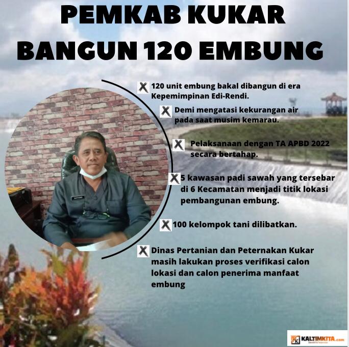 Kepala Dinas Pertanian dan Peternakan (Distanak) Kukar, Sutikno, memaparkan bahwa program pembangunan embung ini sangat bermanfaat bagi sawah.