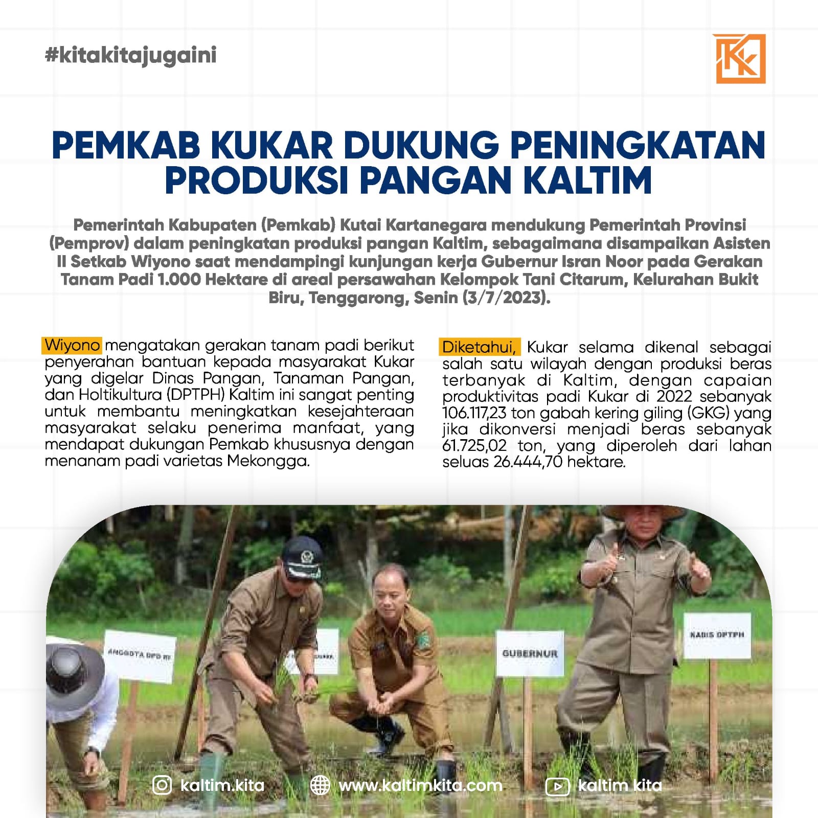 Apalagi Kukar disebut mampu menjadi lumbung pangan Kaltim dinilai bisa memenuhi ketersediaan pangan, dengan potensi lahan di Kukar terbilang luas dibanding kabupaten dan kota lainnya di Kaltim.