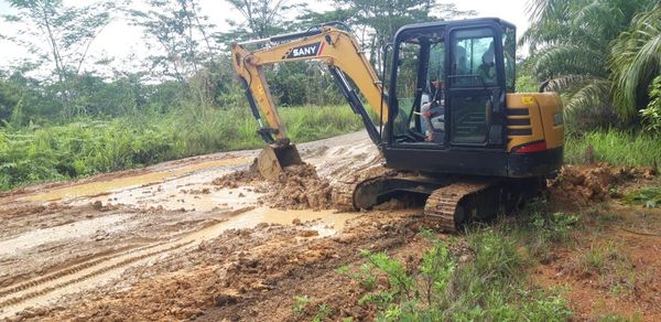 “Saat ini baru perkerasan pondasi soil cement. Kerusakan dibeberapa titik pada ruas jalan tersebut diakibatkan saluran drainase yang mengalami kelemahan dan peningkatan volume lalulintas harian dari kendaraan besar sekitar 20 unit perminggunya,” jelasnya.