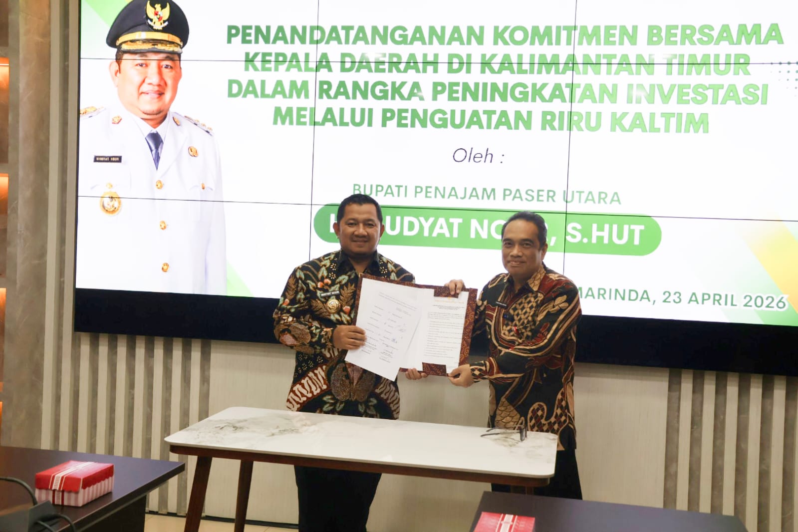 Dalam pertemuan tersebut, sejumlah kepala daerah di Kaltim menandatangani komitmen bersama untuk mengoptimalkan peran Regional Investment Relations Unit (RIRU) sebagai motor penggerak promosi investasi daerah.