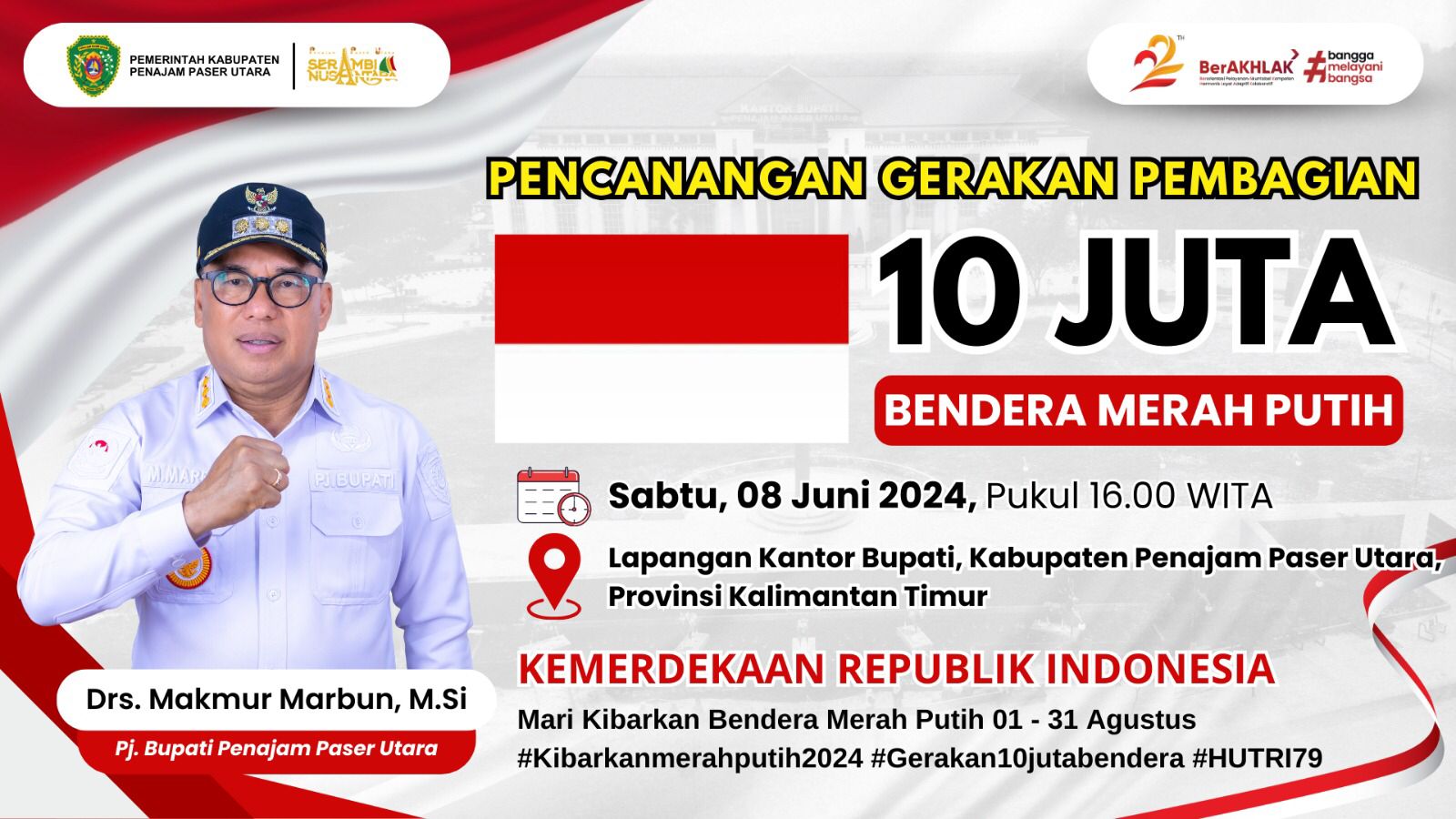 Hasil rapat koordinasi antara pemerintah Kab.PPU dengan Direktorat Jenderal Politik dan Pemerintahan Umum ((Ditjen Politik dan PUM) Kementerian dalam negeri (Mendagri), yang rencana akan menggelar kirab bendera merah putih dan pembagian bendera kepada masyarakat yang akan dilaksanakan pada hari Sabtu, 08/06/2024 yang star awal di depan Masjid agung Al-Ikhlas yang finish di halaman kantor Bupati.