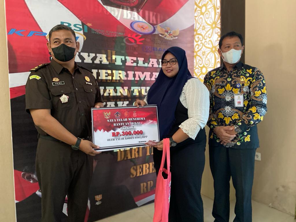 "Anggaran BLT ini dari pemerintah, untuk Kodim penerima sebanyak 6000 KK, pembagian di 34 kelurahan diharuskan selesai hari ini" ucapnya.