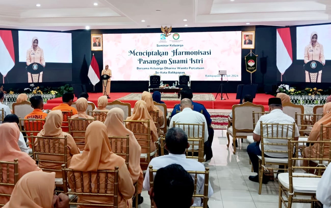 Kaltimkita.com, BALIKPAPAN - Dalam rangka Menciptakan Harmonisasi Pasangan Suami Istri, Pemerintah Kota Balikpapan menggelar seminar keluarga bersama Dharma Wanita Persatuan se-Balikpapan, di Aula Balai Kota, pada Rabu (24/7/2024).