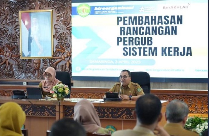 “Itulah perubahan sistem kerja baru yang saat ini harus kita ketahui bersama. Karena itu, bagaimana sistem ini bisa berjalan, maka diatur dalam Rancangan Pergub tentang sistem kerja Pemprov Kaltim,” pesannya.