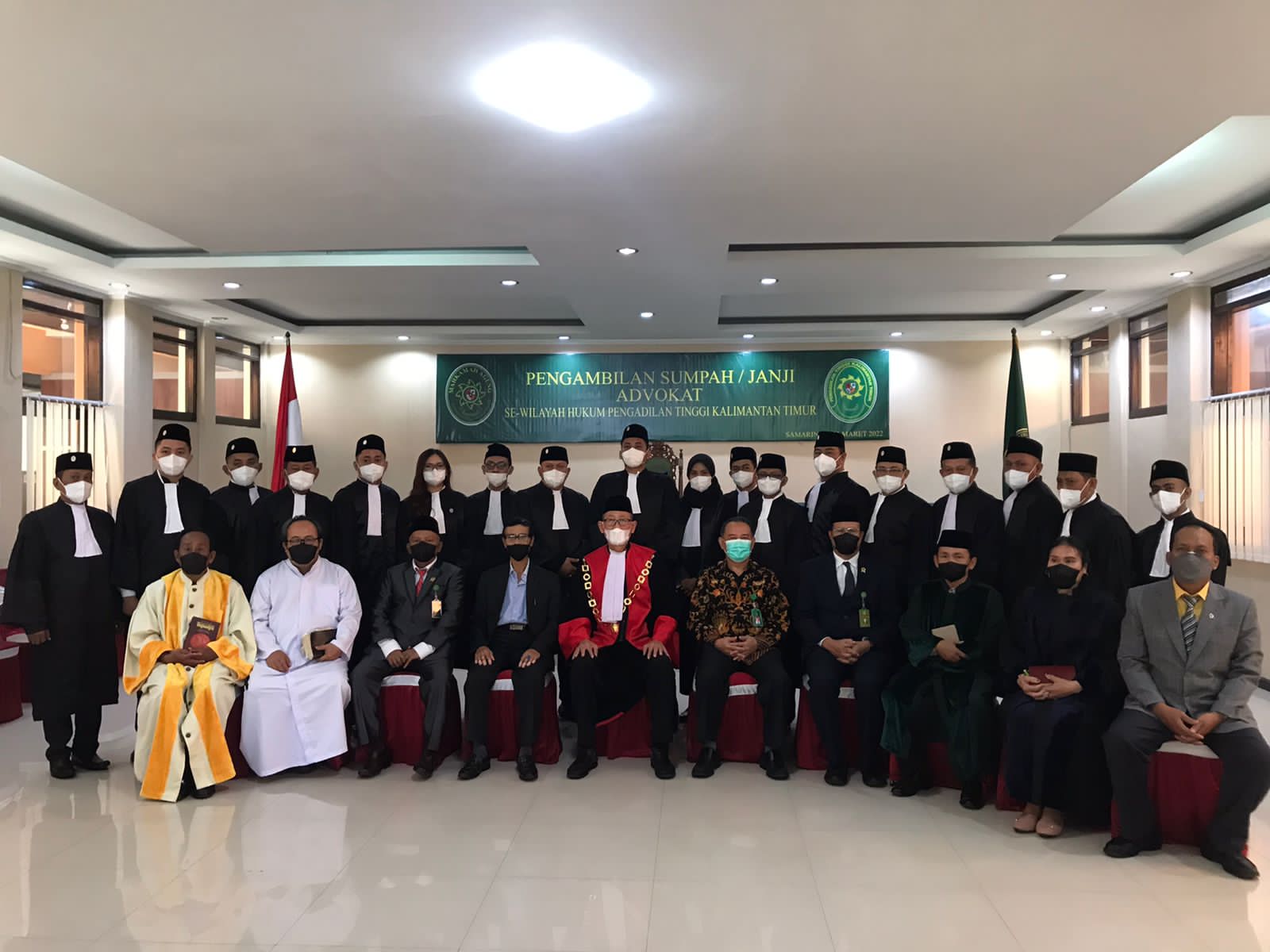 KaltimKita.com, SAMARINDA - Sebanyak 77 advokat melakukan sumpah janji advokat yang dilaksanakan di Pengadilan Tinggi Samarinda, Kamis (31/3/2022). Ya pengambilan sumpah ini dilakukan sehubungan berakhirnya waktu verifikasi berkas penyumpahan, salah satunya di organisasi Kongres Advokat Indonesia (KAI).