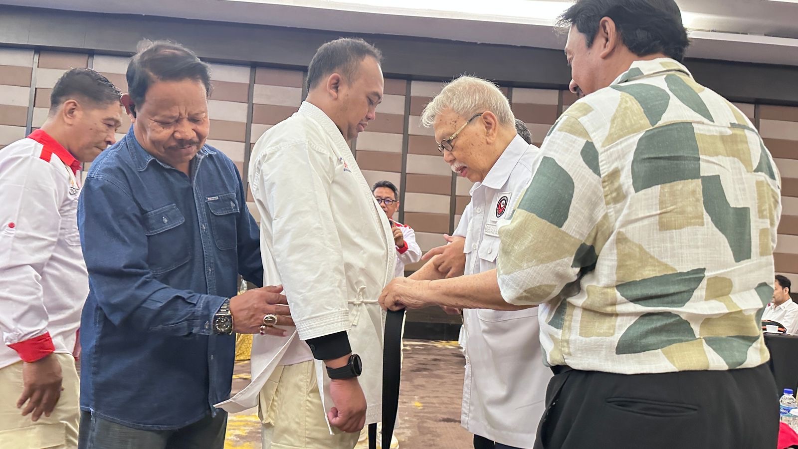 KaltimKita.com, BALIKPAPAN - Kepengurusan perguruan Indonesia Karate-do (Inkado) Kaltim resmi dilantik di Swiss Bellhotel Balikpapan, Sabtu (16/11/2024). Sekjen PB Inkado, Shihan Octar Ramon melantik langsung kepengurusan baru periode 2024-2029 dibawah kepemimpinan Jundi Rahmad Danny dengan disaksikan oleh Ketua Dewan Guru PB Inkado, Kancho G.A Pesik.