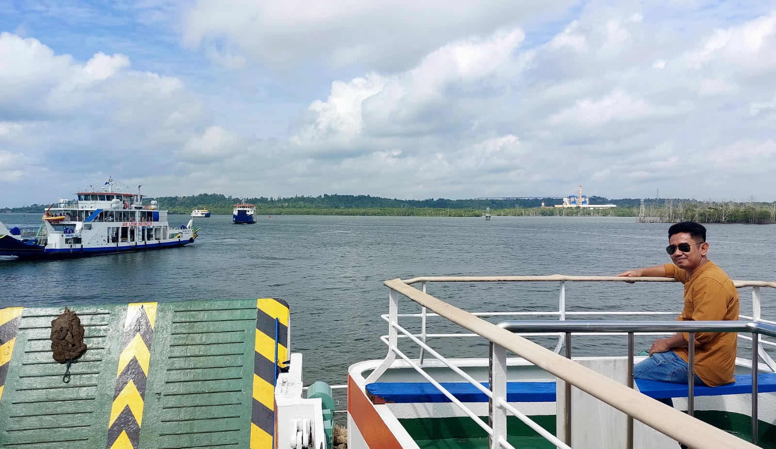 Menurutnya, menggunakan kapal Feri memberikan sensasi tersendiri baginya. Di samping ia bisa sambil menikmati perjalan, ia pun sekaligus bekerja di atas kapal.