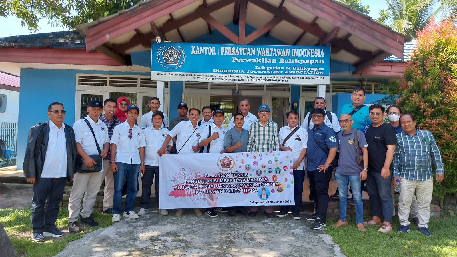 Datang dengan 10 anggota, PWI Barito Utara disambut hangat di kantor DPC PWI Balikpapan.