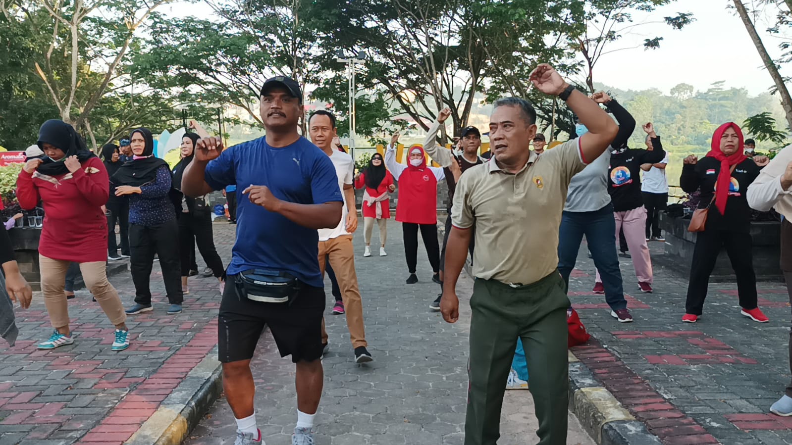 KaltimKita.com, BALIKPAPAN - Dalam rangka memperingati Hari Lahir Pancasila, Lembaga Pemberdayaan Masyarakat (LPM) Kelurahan Gunung Samarinda berkolaborasi dengan Koramil 0905-01 Balikpapan Utara, menggelar Senam Bersama di Taman Bendali Wonorejo, Kecamatan Balikpapan Utara, pada Rabu (1/6/2022) pagi.