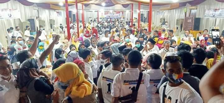 Malam bersejarah bagi paslon bupati/wabup Kutim nomor urut satu Mahyunadi-Kinsu pada kampanye akbarnya ribuan pendukung Makin Kutim meluber sampai-sampai lokasi acara ballroom hotel Mesra tak mampu menampung luapan simpatisan